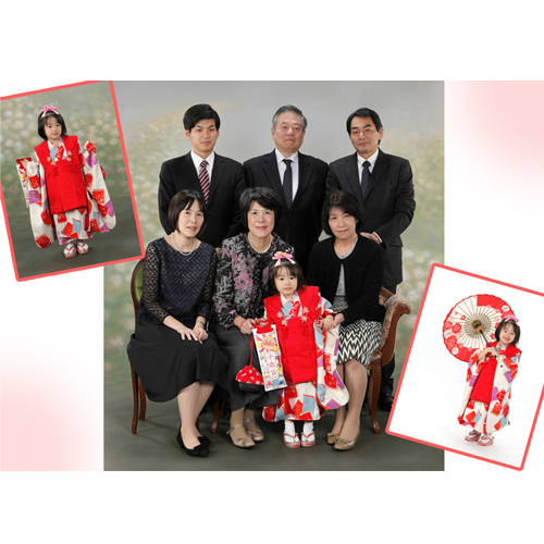 思い出に残る、高品位な七五三撮影をご提供致します。衣装・小物の無料レンタルを用意いたしております。デジタルデータ販売プランも企画いたしました。詳しくは電話で気楽にご相談ください。